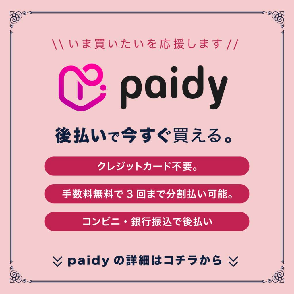 Paidy(ペイディ)を利用することで、クレジットカードをお持ちでない方や現金でのお支払いを希望される方でも、安心してお買い物をお楽しみいただけます。