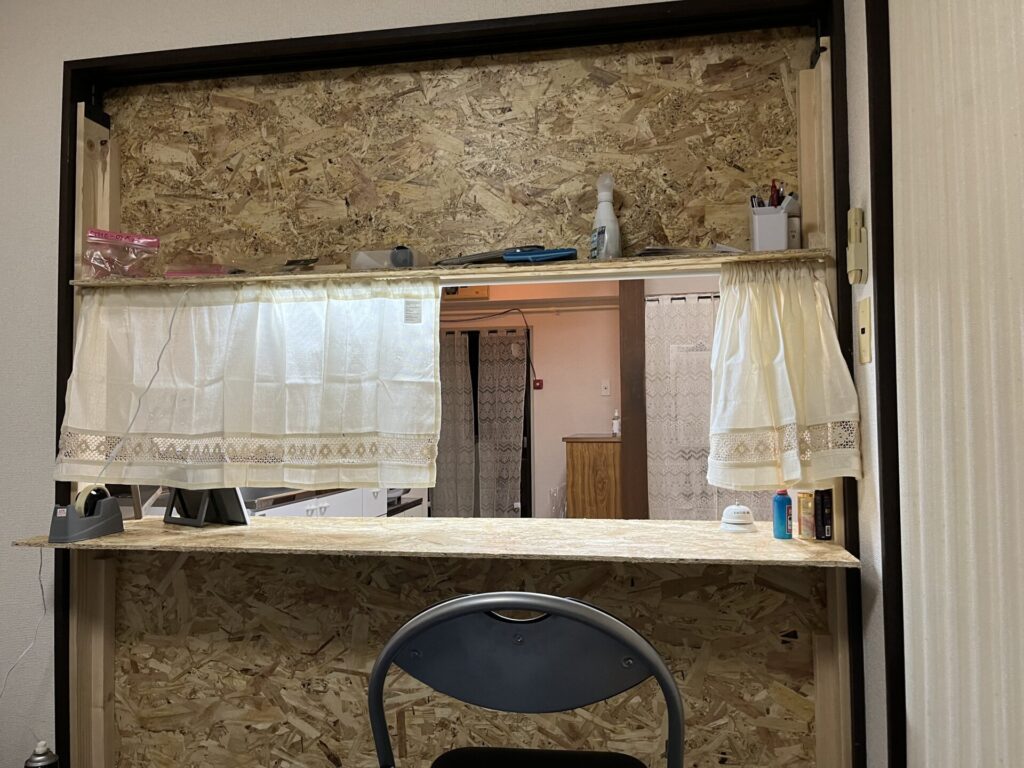 審査が無事に終わり、鍵を受け取った後は店舗の改装に着手。ただし、借りたのは居住用の普通の2LDK。これを店舗として使えるよう改装しなければなりません。幸い、櫻井家はDIYが得意。OSB板(塗装不要のコンパネ)を多用し、低予算で改装を進めました。