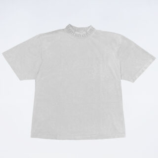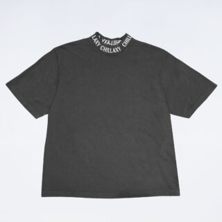 オーバーサイズのモックネックTシャツの襟リブに、4つのCHILLAXYロゴを刺繍。高級感のあるラグジュアリーな雰囲気を演出。