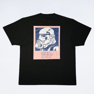 胸元には闇の支配者を彷彿させるチラクシーロゴ。バックプリントにはヘルメットから煙が漂うストナー兵隊をプリント。