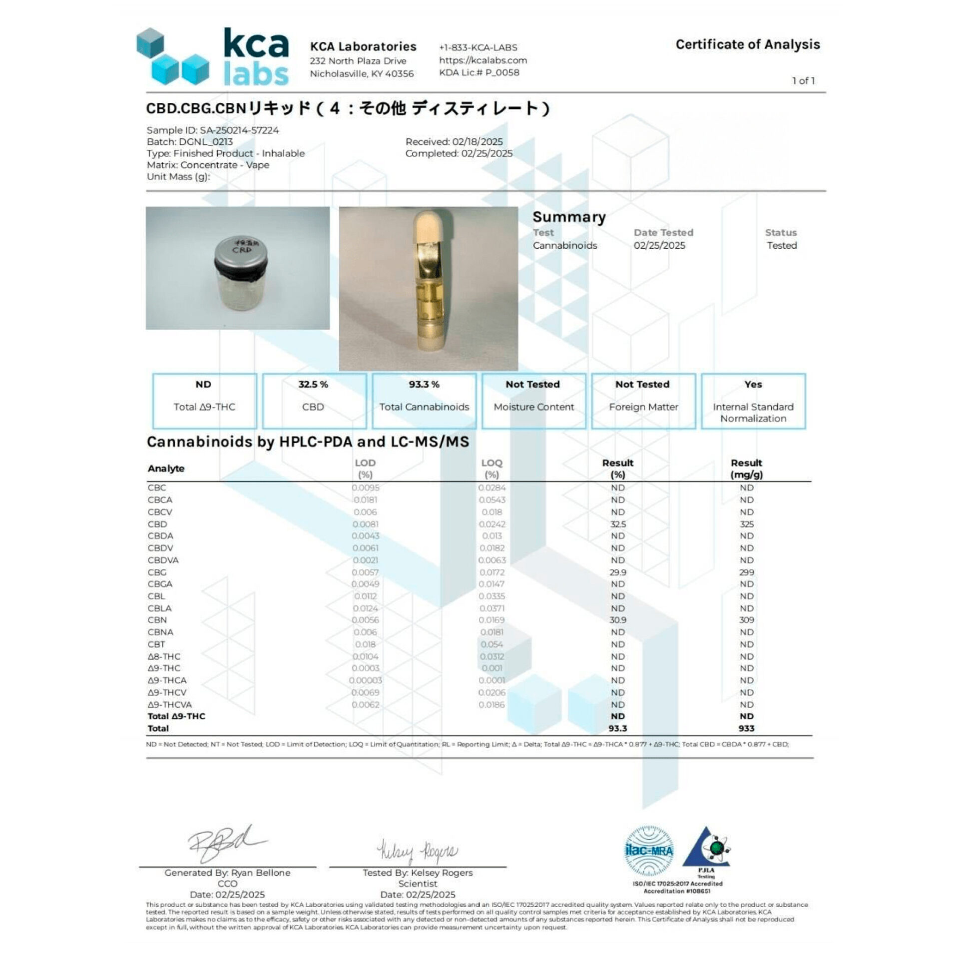 ・カンナビノイド濃度 :CBD 30%,CBG 30%,CBN 30%,Terpene 10%(OG)