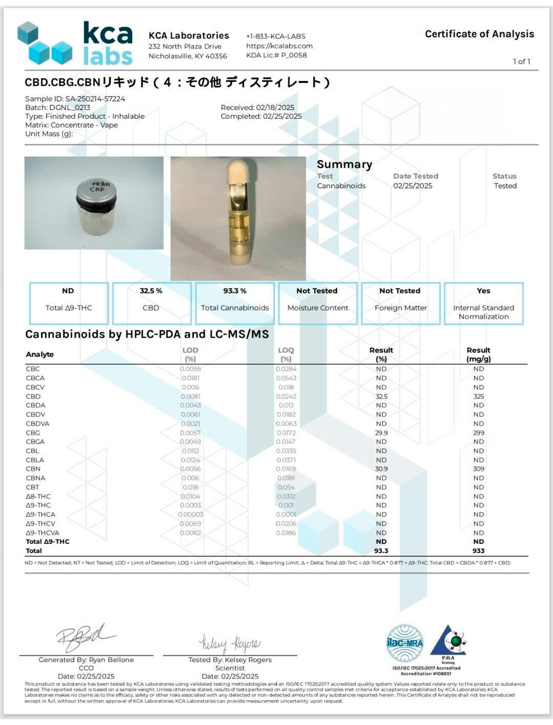 令和6年12月12日、大麻取締法改正後の新基準に対応した製品です。