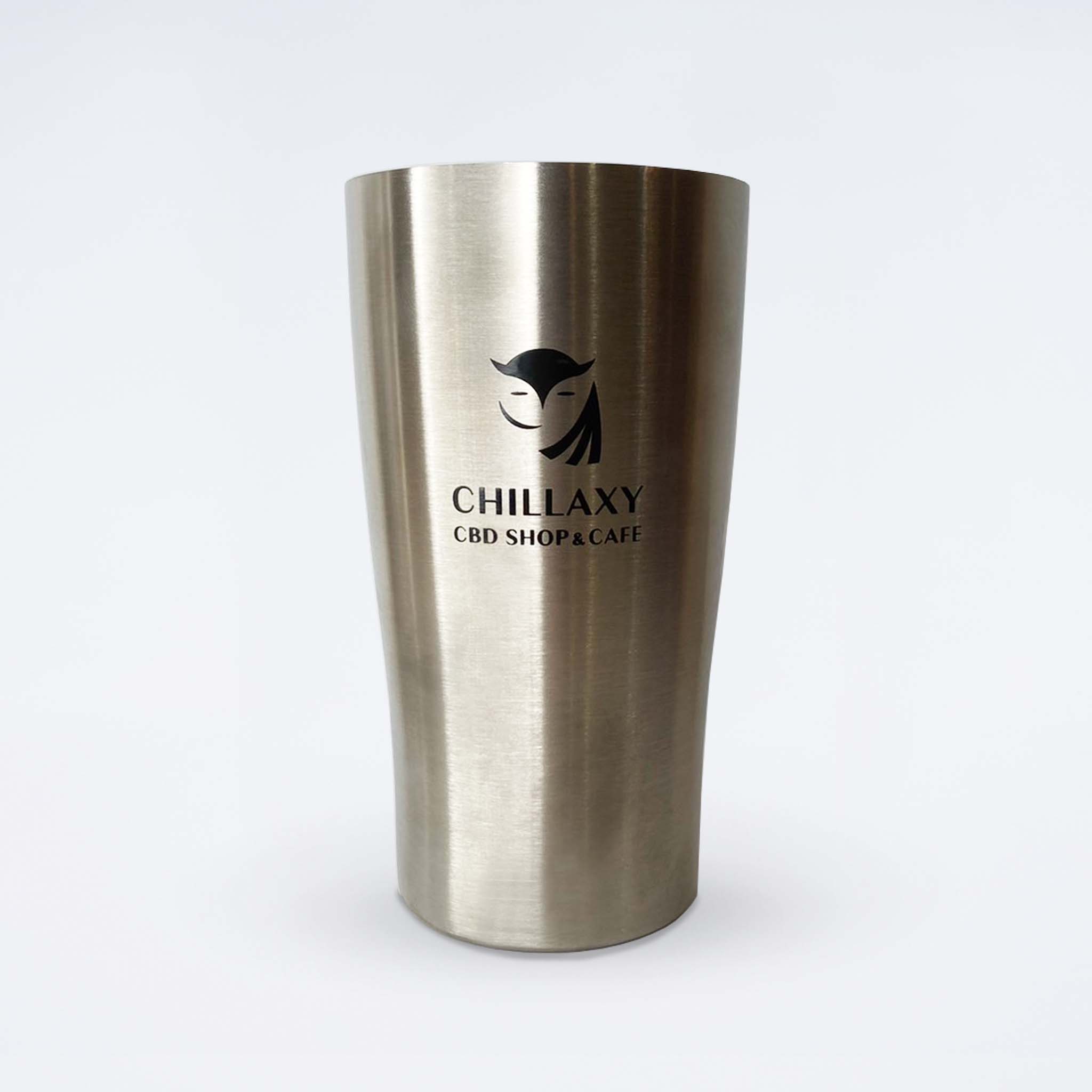 ホットでもアイスでも飲み頃がキープできる真空二重構造のCHILLAXYオリジナルステンレスタンブラーです。