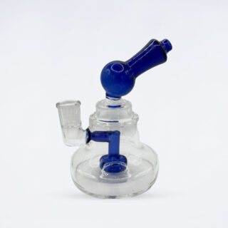インテリア性と機能性を兼ね備えた、ブルーアクセントが印象的な中型サイズのガラスリグ。特徴的なネック構造と厚みのあるボディで、安定した使用感と滑らかな吸引を実現。デスクやトレーの上でもしっかりと存在感を放つ一本です。