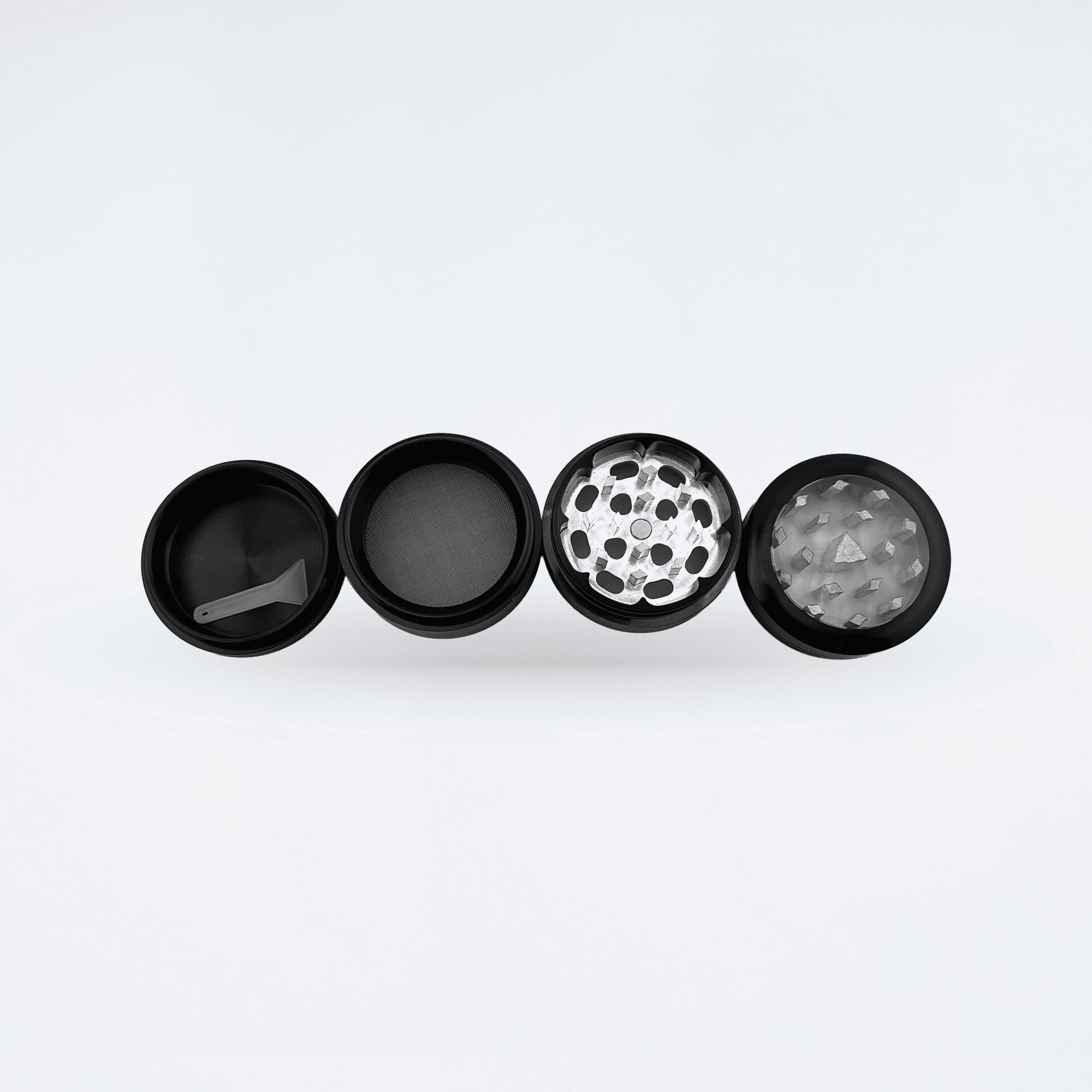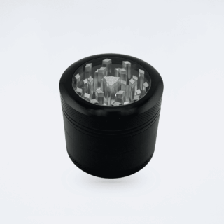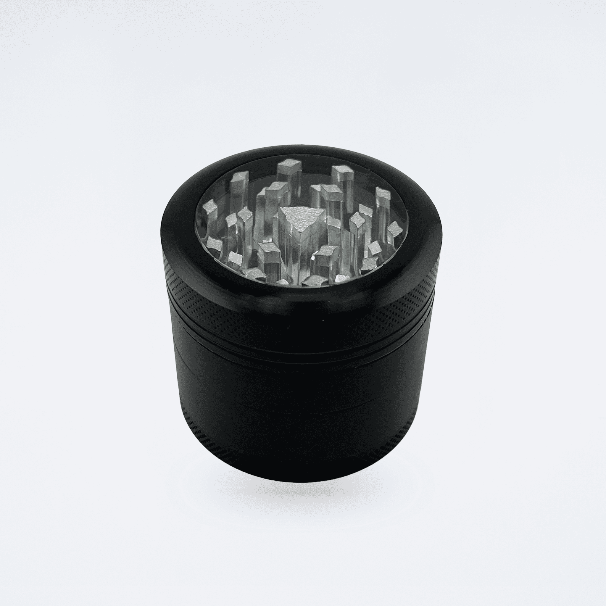 上蓋のアクリル窓から中の様子を確認できる、コンパクトなアルミ製4パーツグラインダーです。