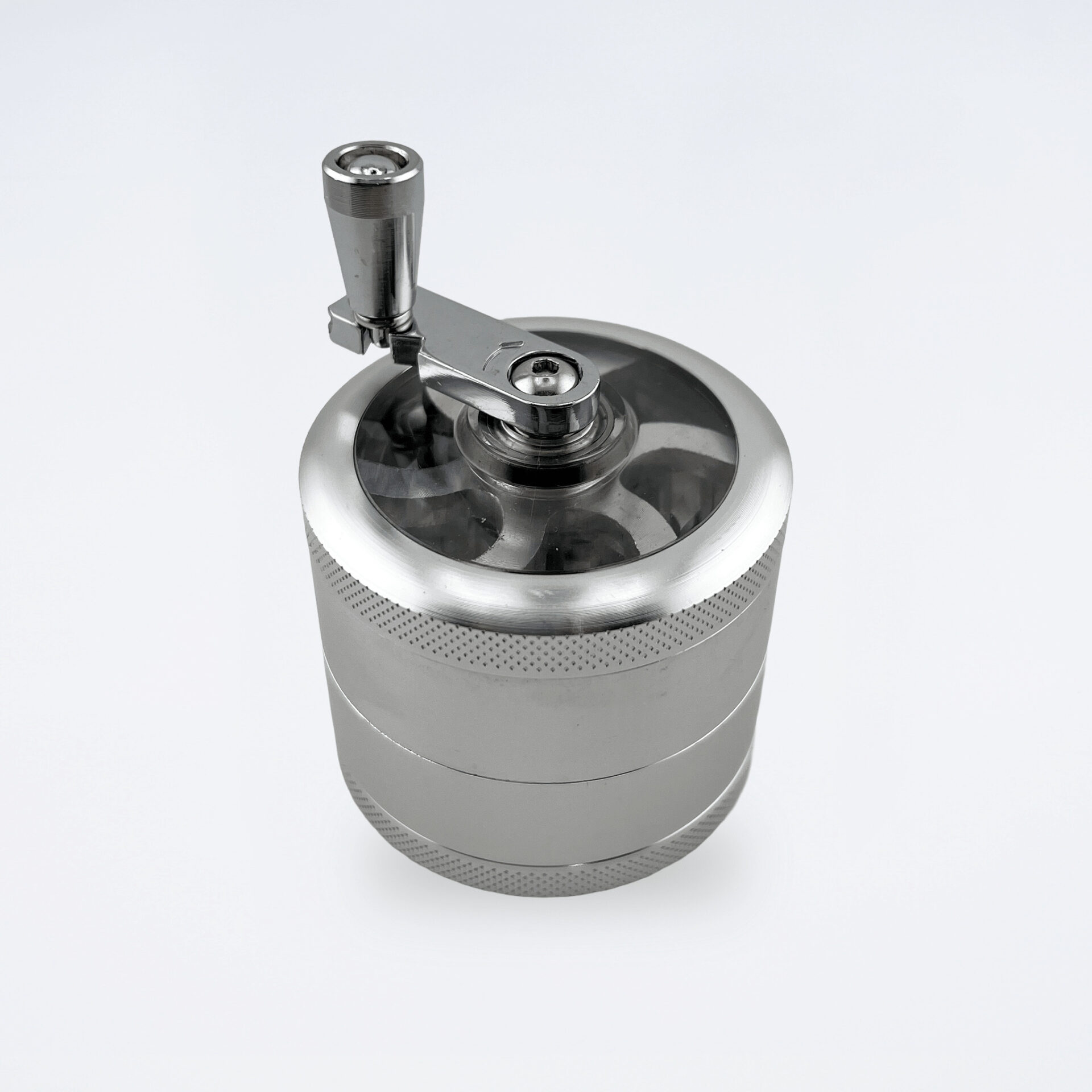 上蓋にハンドルが付いた、使いやすいアルミ製の4パーツグラインダーです。