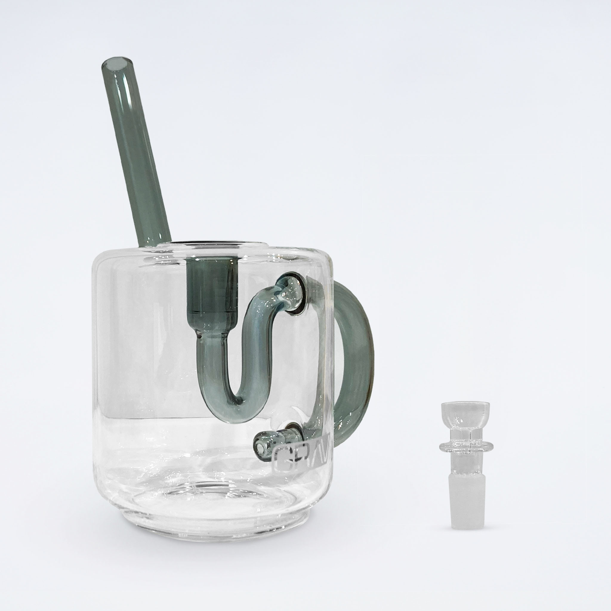マグカップ型のガラスバブラーです。水を通し、煙を十分に冷却するのでマイルドな吸いごたえをお楽しみいただけます。高品質で割れにくい耐熱ガラスを使用しているため、丁寧に手入れすることで長くご愛用いただけます。「カップボウル 14mm」が付属しているので、ハーブ用としてすぐにお使いいただけます。