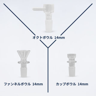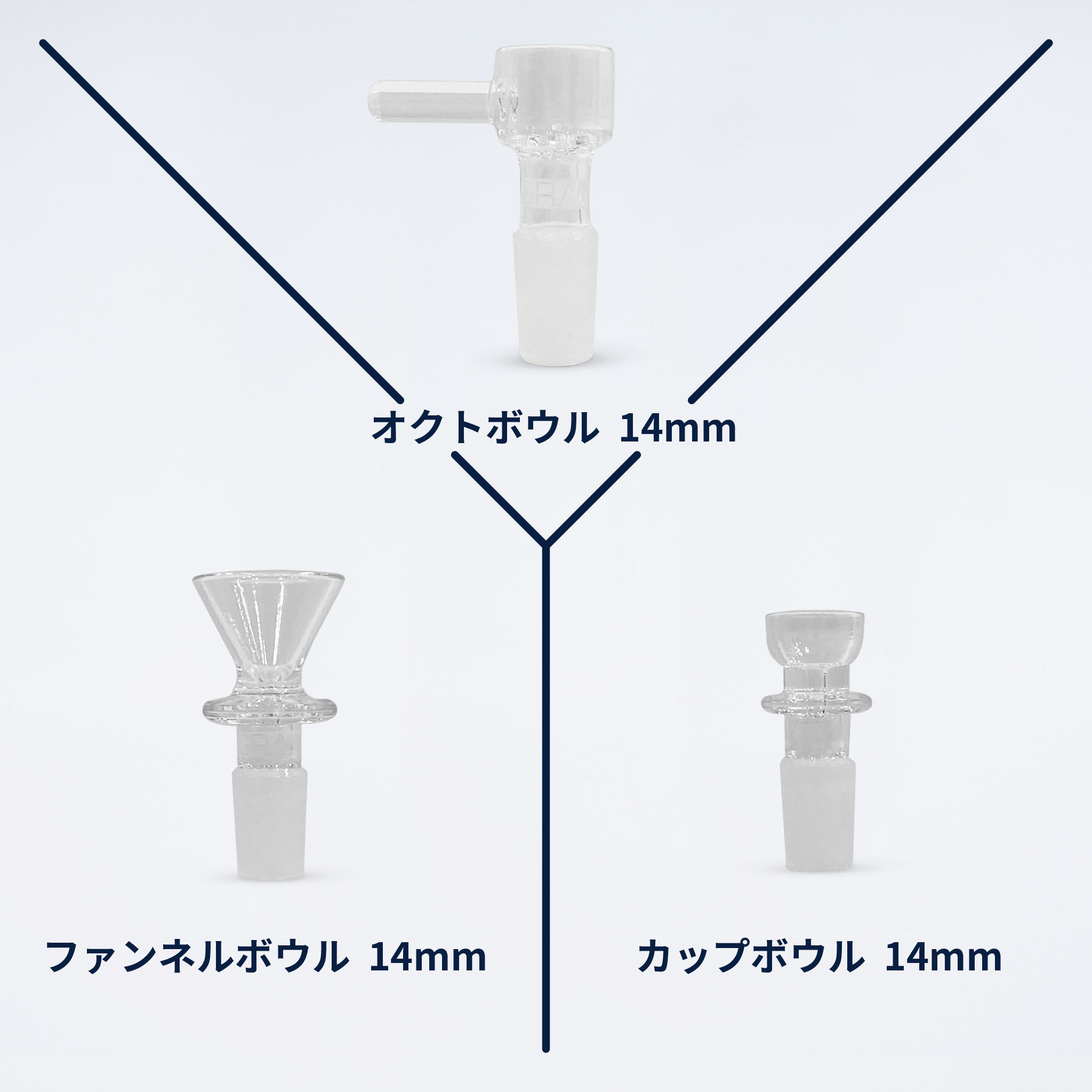 ボウル火皿(14mmオス)です。高品質で割れにくい耐熱ガラスを使用しているため、丁寧に手入れすることで長くご愛用いただけます。お好みでスクリーンをご使用ください。タイプはオクトボウル、カップボウル、ファンネルボウルからお選びいただけます。