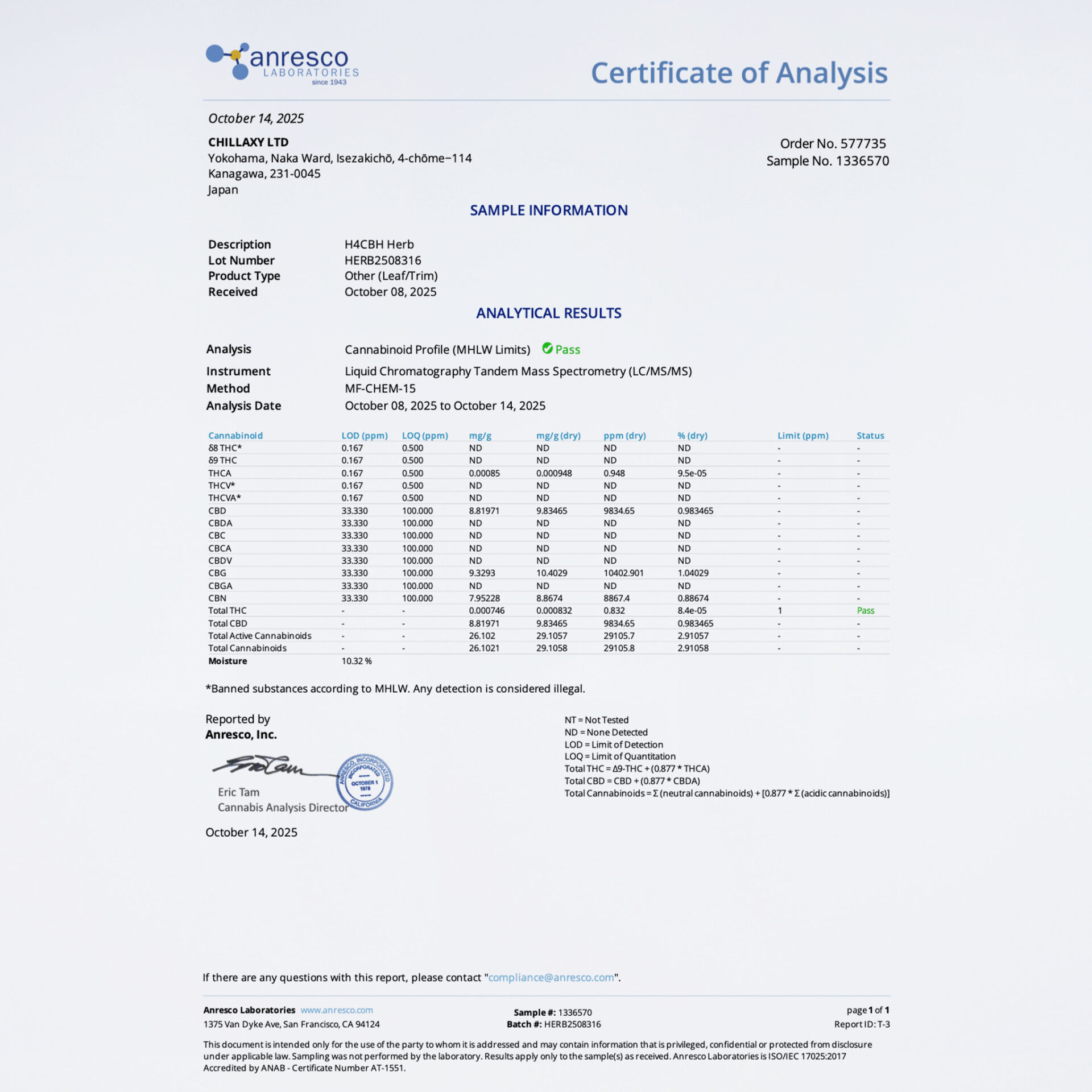 厳選されたミックスハーブ、テルペンを使用したH4CBH配合のドライハーブです。テルペンとハーブによる本格的な香りをお楽しみください。