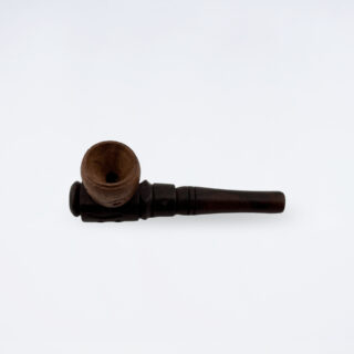 繊細な彫り模様が施された、手のひらサイズの天然木製ミニパイプ。