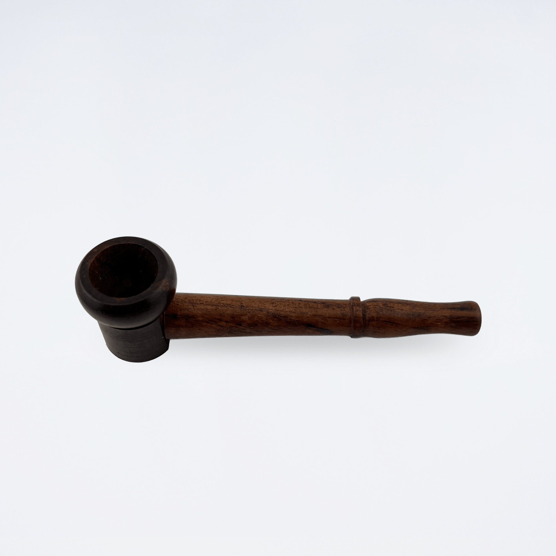 繊細な彫り模様が施された、手のひらサイズの天然木製ミニパイプ。