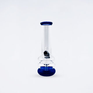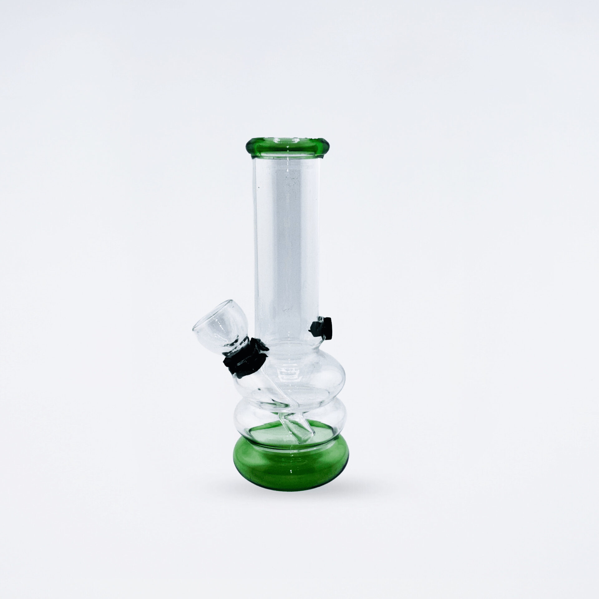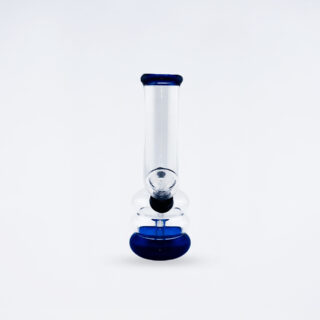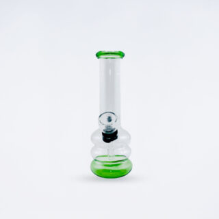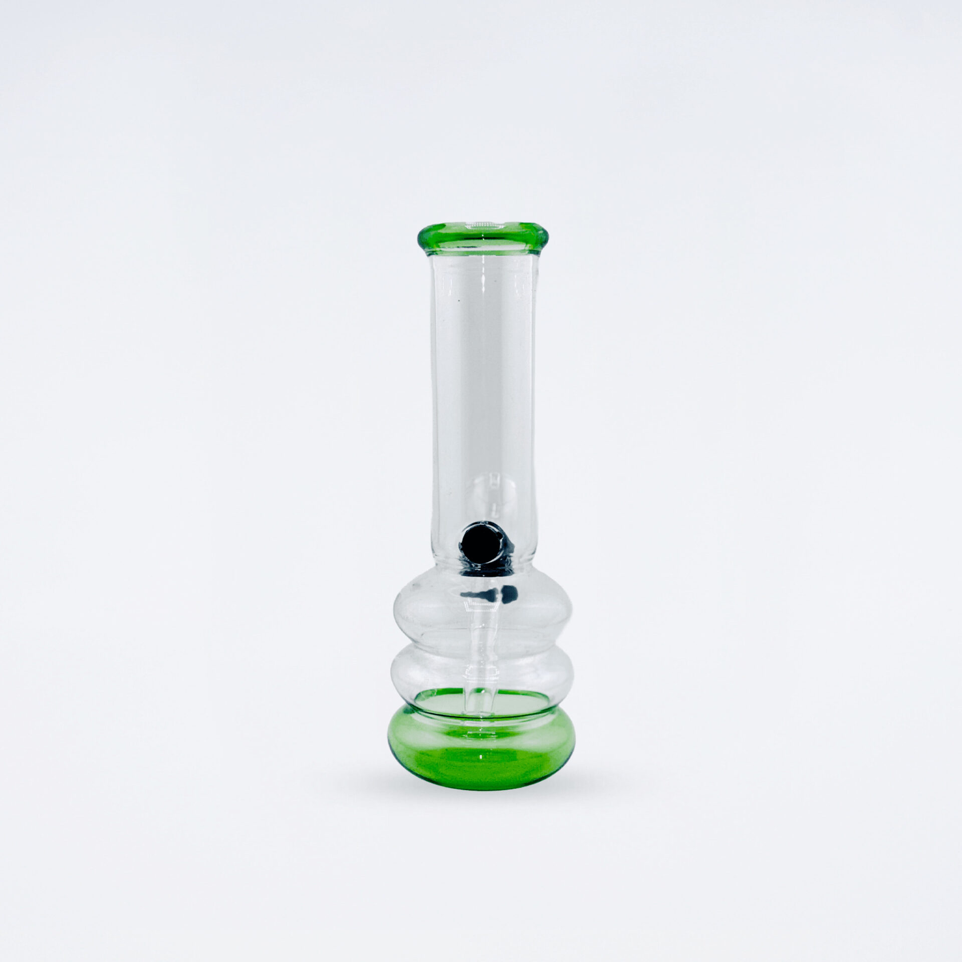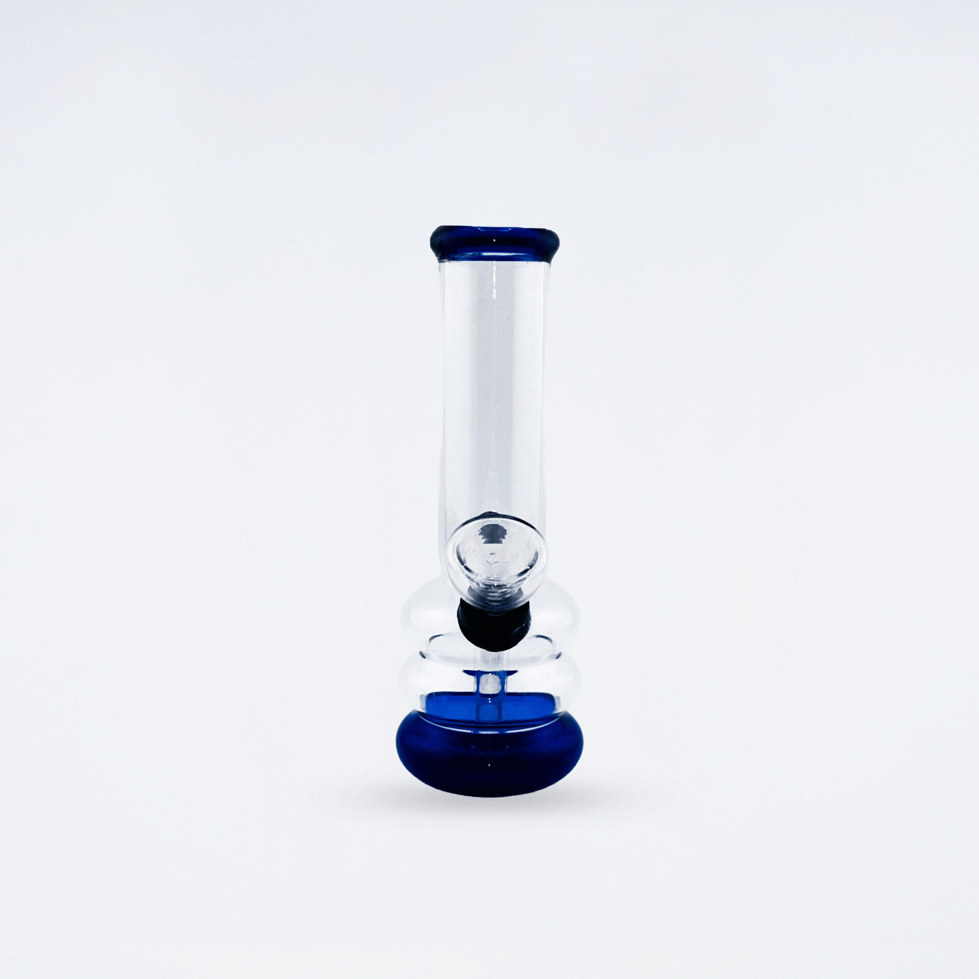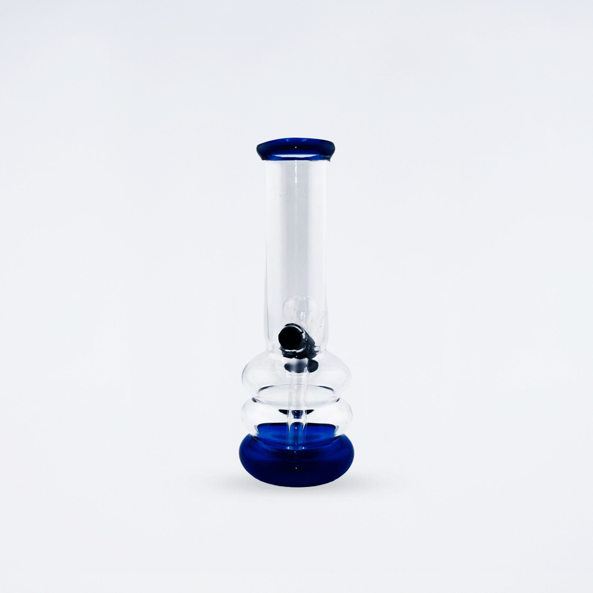吸い口とボディ中央の3リング部分にカラーが入った、華やかでかわいいガラスミニボング。