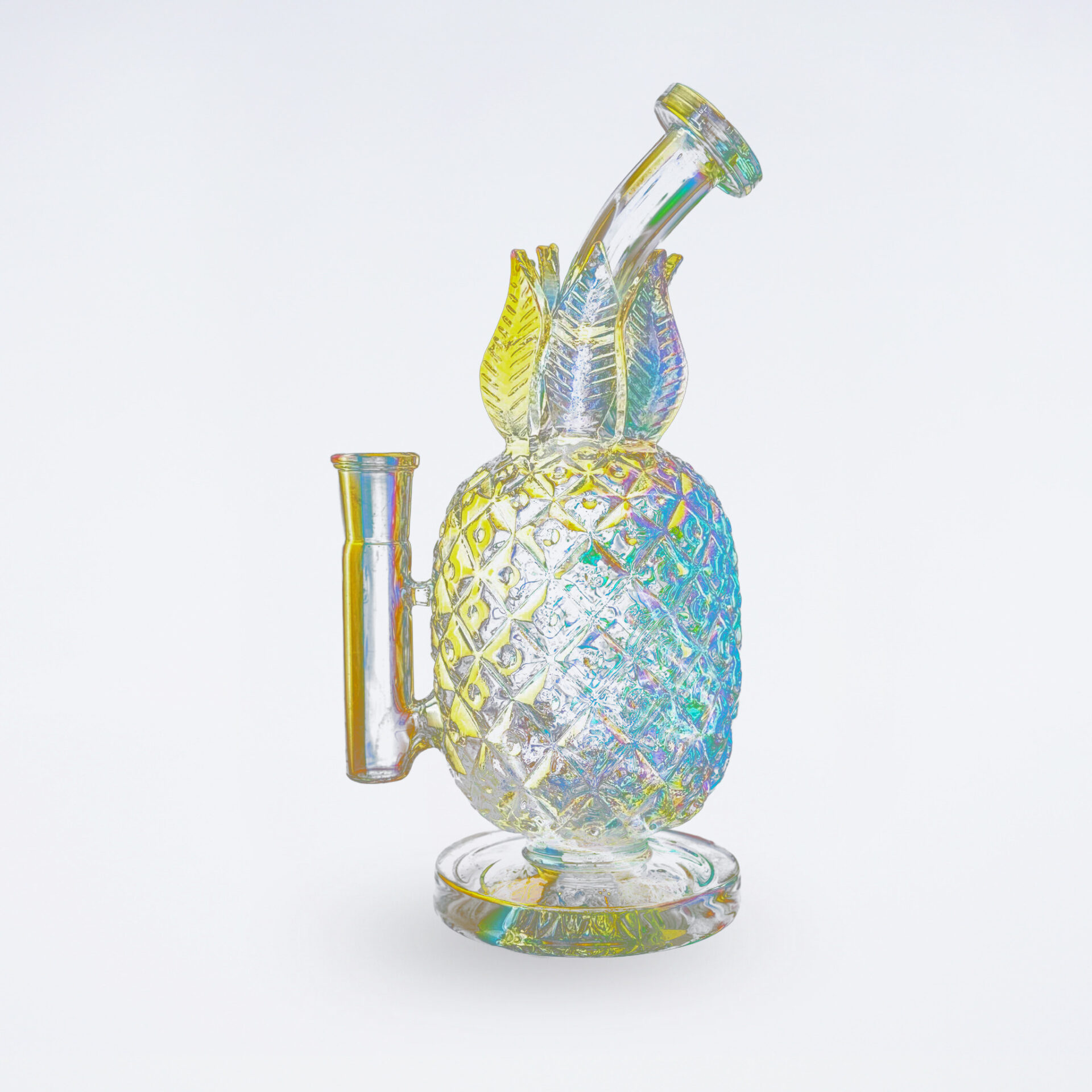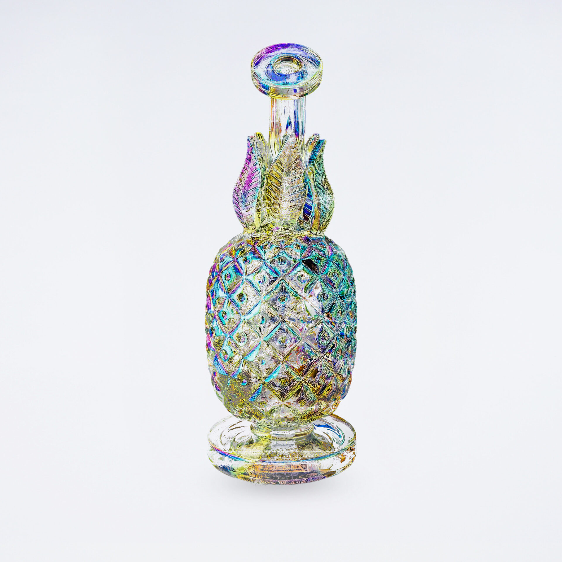 虹色にきらめくラグジュアリーなオーラをまとったパイナップルガラスボング。