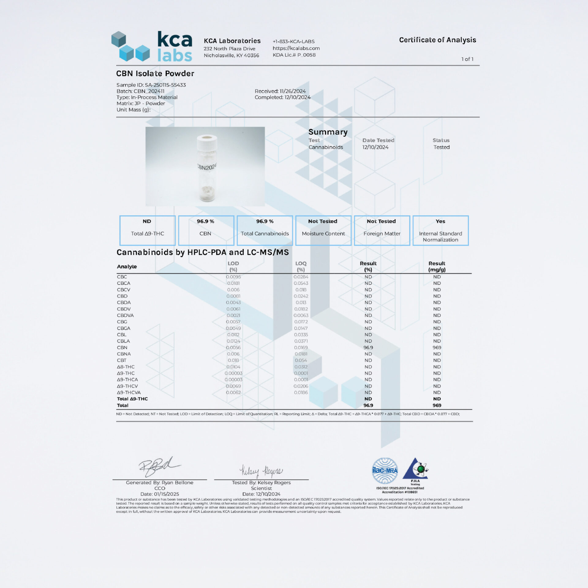 米国産CBNアイソレートです。CBNはTHCが酸素や光、そして温度にさらされることで生成するカンナビノイドです。CBDとは異なる使用感が得られると注目を集めており、レクリエーション用途でも期待されています。インディカ寄りのカンナビノイドです。THC未検出の原料なので、安心安全にご利用頂けます。本品は、カンナビノイドの知識をお持ちの事業者向けの商品のため、一般消費者の方のご購入・ご使用はお控えください。