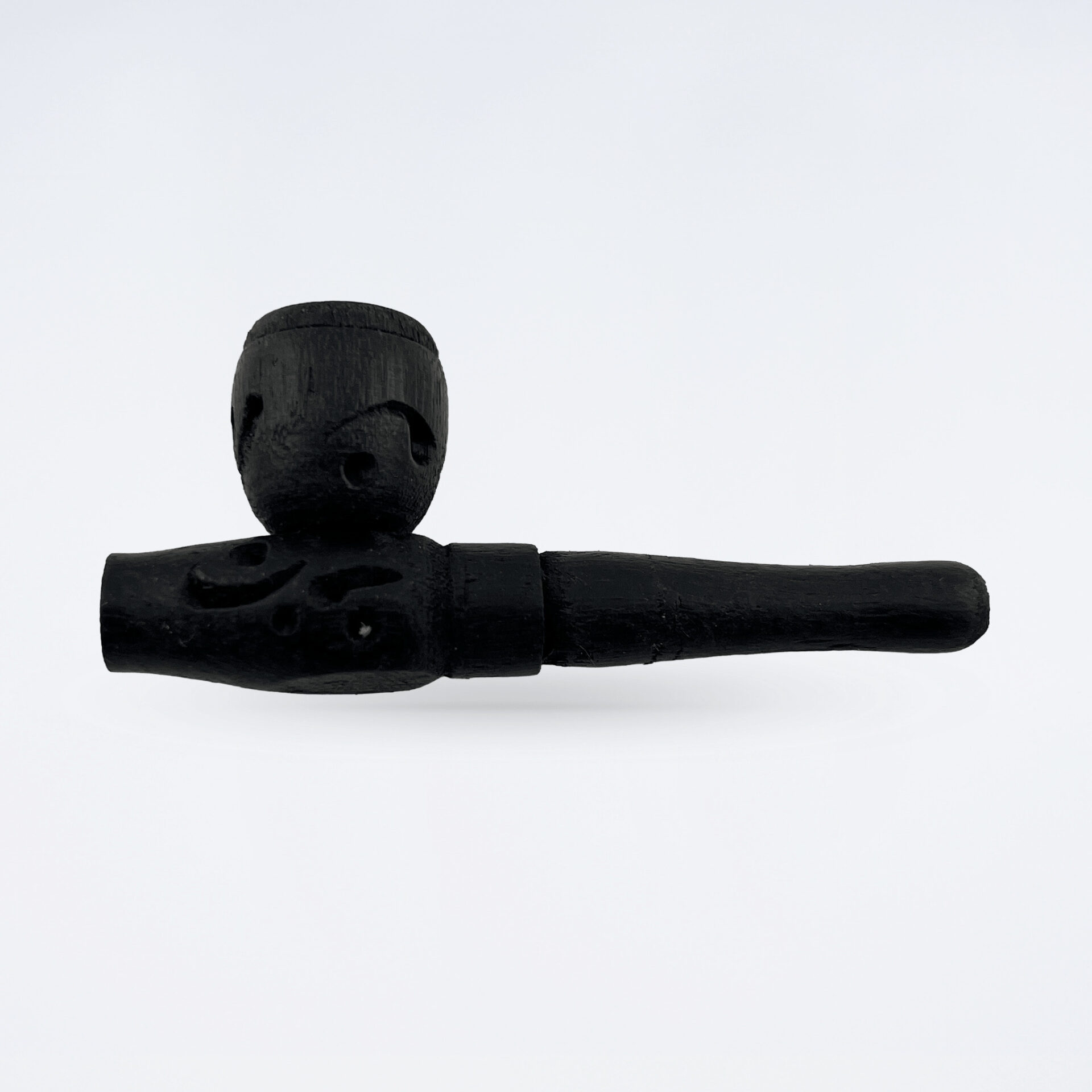 繊細な彫り模様が施された、手のひらサイズの天然木製ミニパイプ。